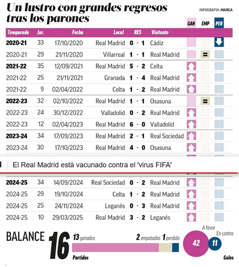 A Marca külön cikket szentelt annak, hogy milyen jól teljesítettek az elmúlt héten a Real Madrid játékosai, és saját benyomásaimmal ellentétben a válogatott szünet utáni teljesítményünket is – több évre visszamenőleg – alapvetően dicsérni tudja. Nagyon jó hír, hogy senki sem sérültebb, mint ahogy elment, kicsit aggódtunk Mbappe miatt, de csak elővigyázatosságból hozták le a francia meccsen. Huijsen izom problémákkal jelent meg a válogatottnál, de lényegében hazaküldték. Most nem kellett. Xabi is kihagyta a keretből, hadd pihenjen a EC előtt! Visszatért viszont Alaba, úgyhogy Rüdiger nélkül is megvan az 5 kezdő védőnk. A barazil különítményünk szinte brillírozott a válogatottban, innen is főhajtás Carlo papának, hogy felhozta a srácokat hangulatban…