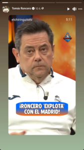 Az biztos, hogy nem mindennapi időket élünk, pár százezer (lehet, hogy pár millió?) divat drukker most lemorzsolódik a Real Madridról. Ami nem is feltétlenül baj. Vannak azonban „komoly” emberek is, akikből – reméljük csak átmenetileg – kiveszett a hit a csapat és a klub vonatkozásában. Ilyen pl. a AS spanyol lap vezéregyénisége, az ős Madrid drukker, Tomás Roncero is. Az El Chiringuito adásába úgy ment be, hogy egy ideig ne tekintsenek rá úgy, mint egy Madrid szimpatizánsra, mert jelenleg semmit nem talál gárdában abból, ami miatt ő valaha is Madrid drukker lett.